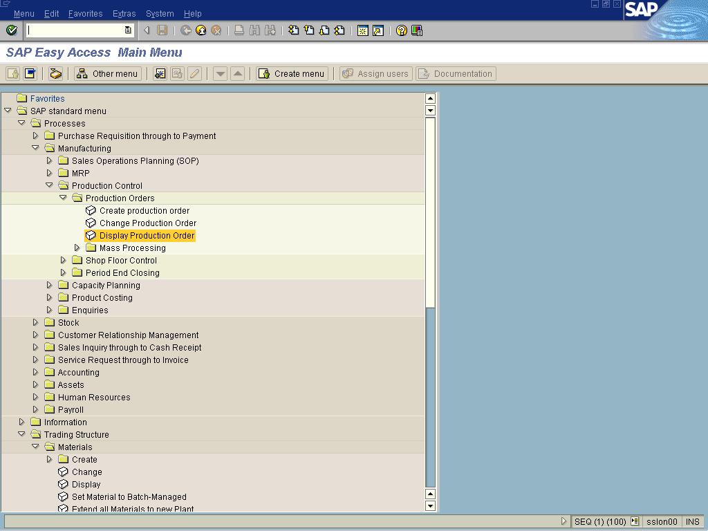 SAP Easy Access Main Menu