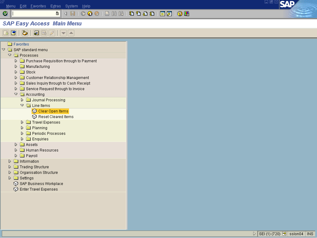 SAP Easy Access Main Menu