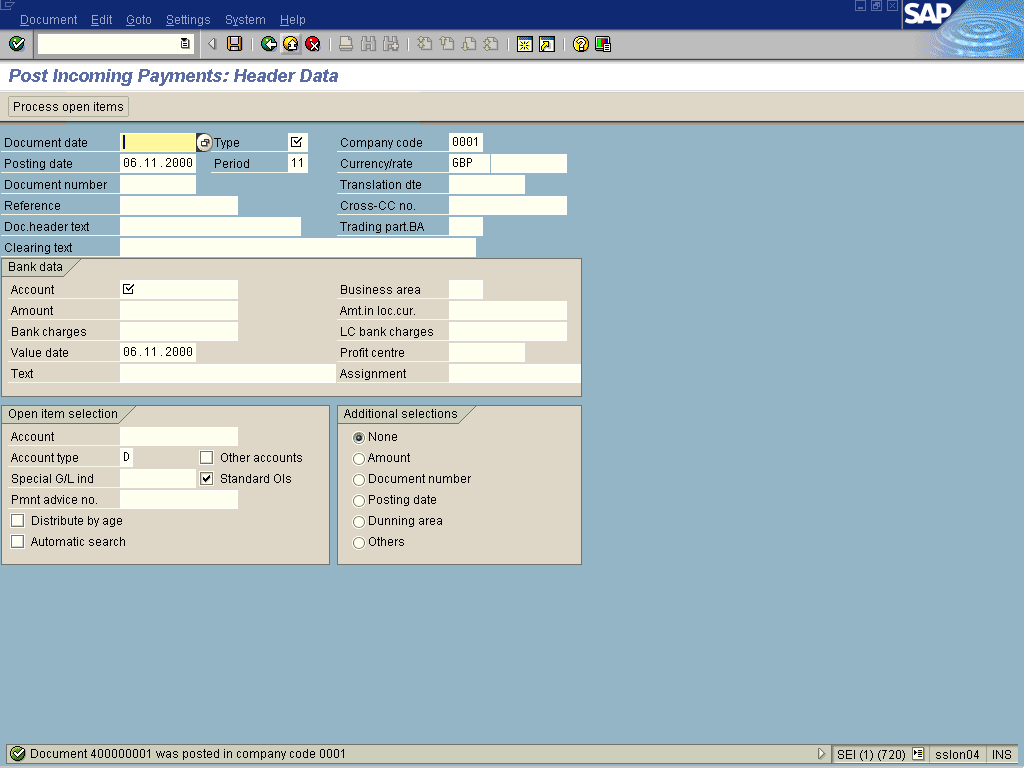 Post Incoming Payments: Header Data