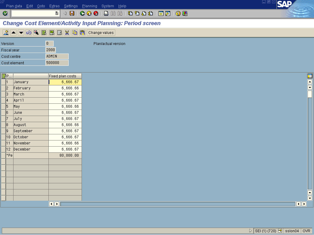 Change Cost Element/Activity Input Planning: Period screen